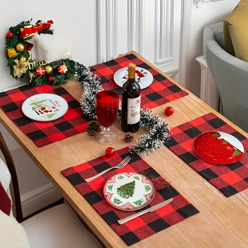 Uma mesa posta com itens natalinos como velas, flores, e acessórios temáticos cria instantaneamente uma atmosfera de festas e aconchego. O ambiente se torna acolhedor e perfeito para celebrar a data, estimulando um clima de festa e união.