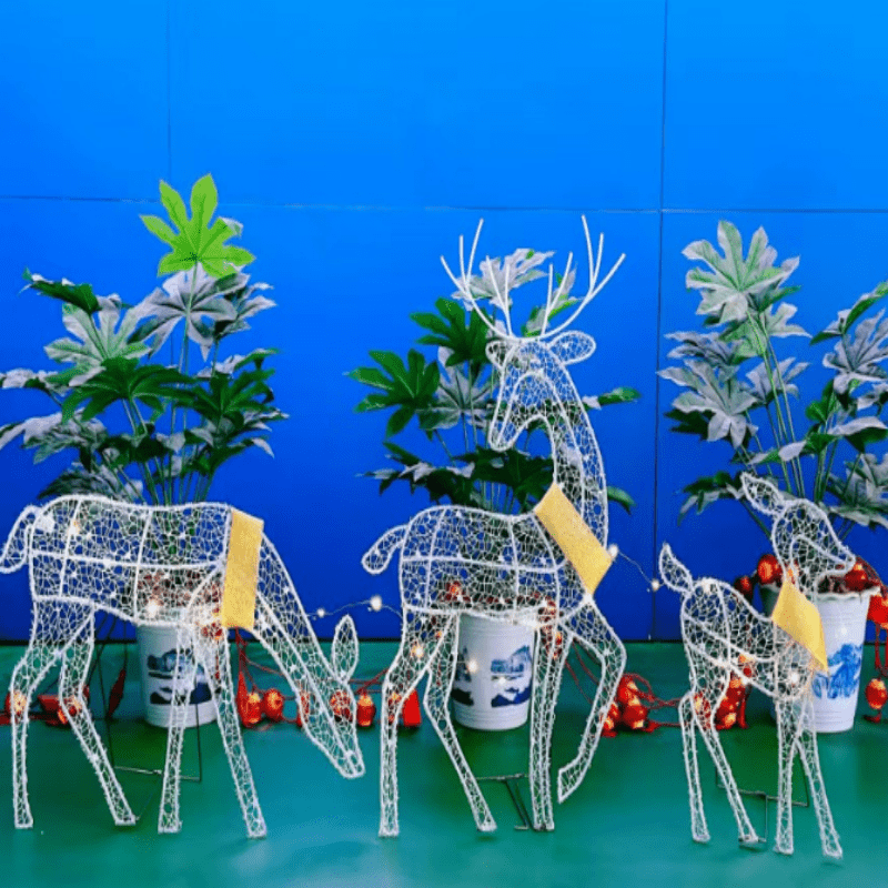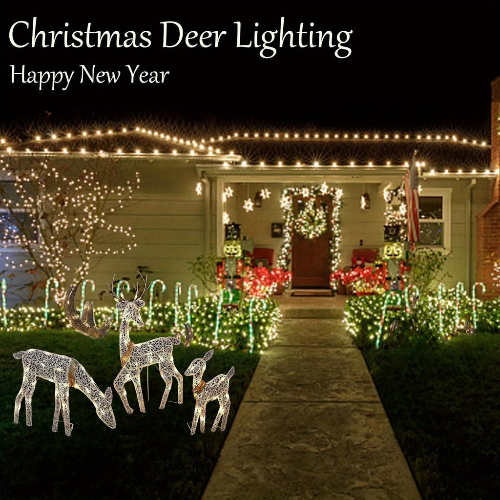 Conjunto de Decoração de Jardim de Rena LED com 3 Peças