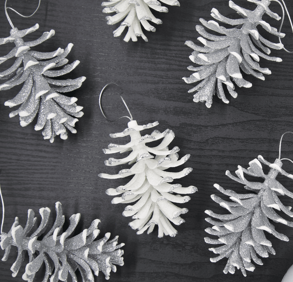 Esta decoração é perfeita para o Natal, trazendo o charme rústico das pinhas e o glamour do prateado para um contraste visual encantador.