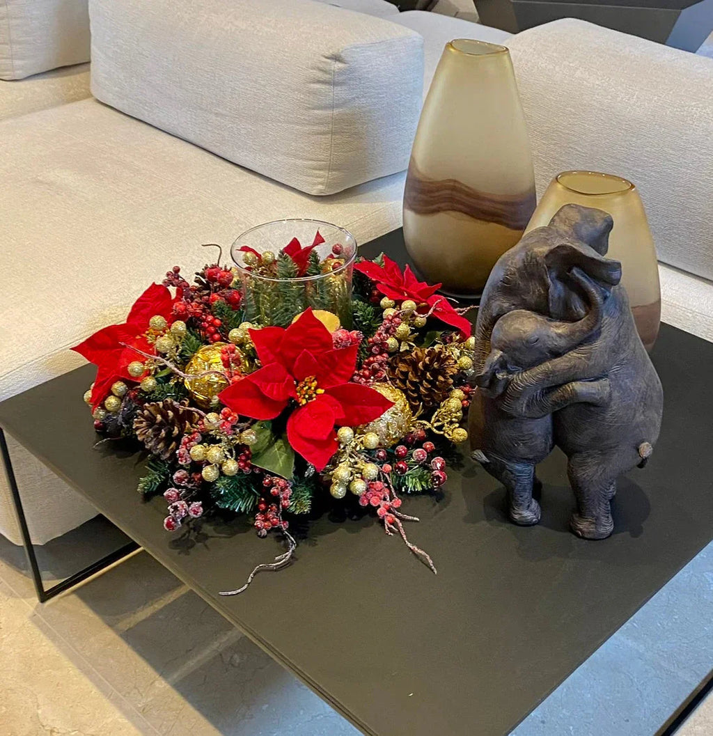 🌹✨ Arranjo de Mesa Natalino – O toque final para uma mesa encantadora! Feito com elementos tradicionais e detalhes sofisticados, este arranjo traz o charme e a magia do Natal para o centro da sua mesa. Combinando cores festivas e acabamentos elegantes, ele transforma suas refeições em momentos inesquecíveis, criando um ambiente acolhedor e cheio de espírito natalino. Ideal para surpreender e encantar seus convidados!