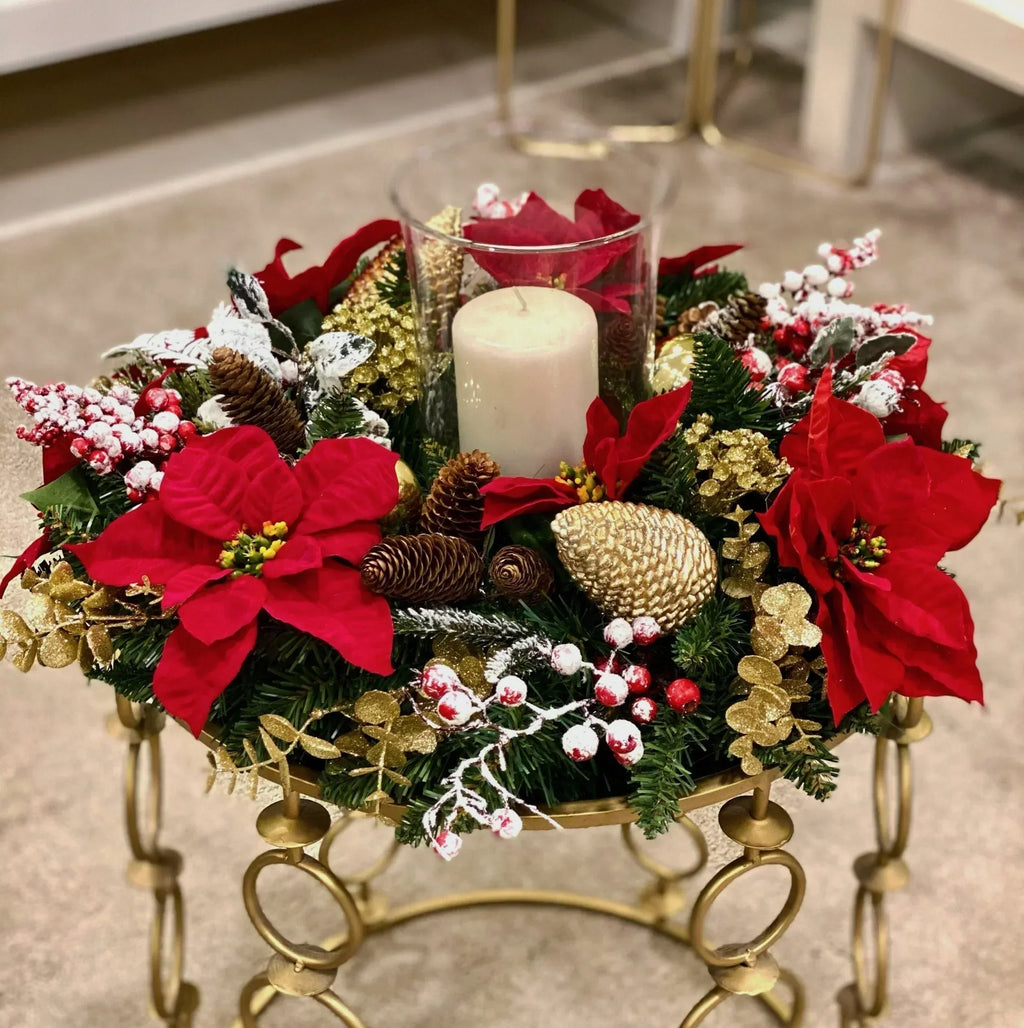 ✨🌹 Arranjo de Mesa Natalino com Mesinha Dourada – Um toque de luxo para o seu Natal! Este conjunto exclusivo combina um arranjo natalino sofisticado com uma mesinha dourada, criando uma peça central deslumbrante que eleva sua decoração. Com elementos clássicos e detalhes refinados, o arranjo complementa perfeitamente o brilho elegante da mesinha, adicionando um toque de glamour e aconchego ao ambiente. Ideal para trazer charme e sofisticação à sua casa e tornar cada momento ainda mais especial!