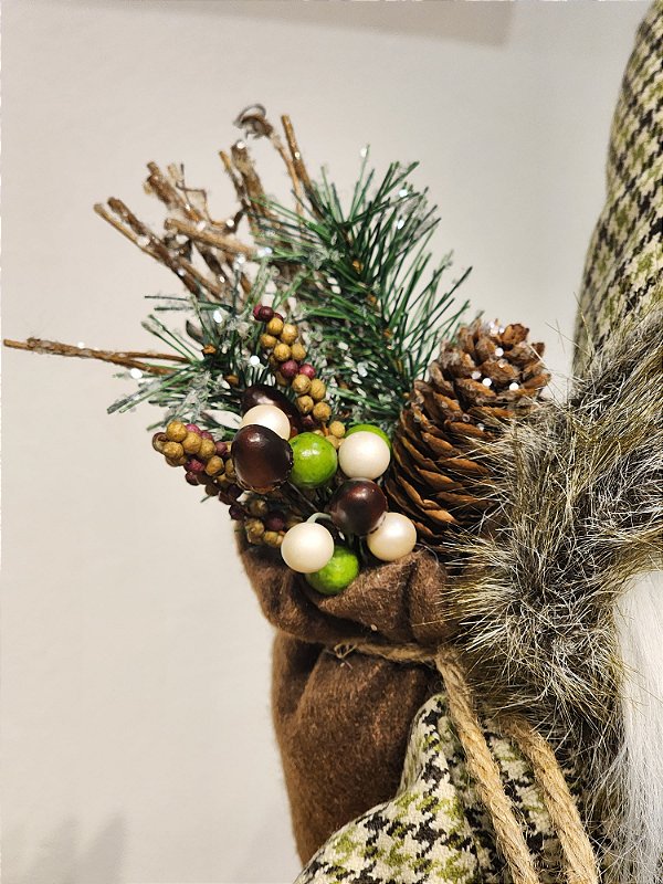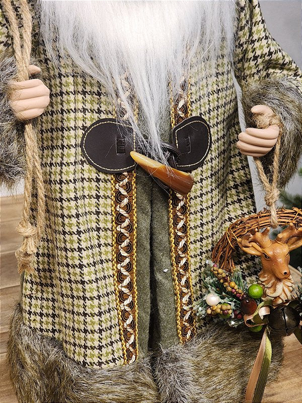 🎅 Papai Noel Deluxe Rústico Verde - Rosto de Porcelana 50cm 🎄