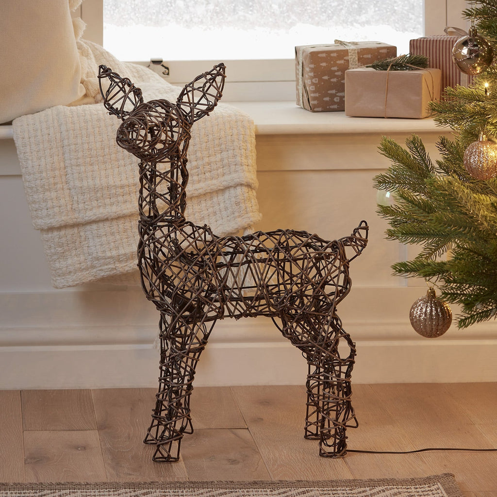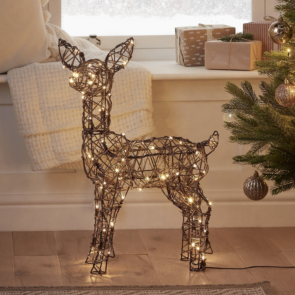 Adicione um pouco de diversão festiva ao seu jardim de inverno com nossa figura de Natal de alpaca! Completo com uma sela multicolorida e chapéu de Papai Noel, este personagem de Natal certamente adicionará charme à sua exibição. Com 78 cm de altura, é iluminado por 70 LEDs brancos quentes para adicionar um brilho brilhante e mágico ao seu jardim. Ótima para estilizar na sua varanda e ao redor da porta da frente com outras figuras de Aqueça os corações de todos os seus convidados neste Natal com o nosso encantador cervo Studley. Esta figura exclusiva foi primorosamente desenhada com base em fulvo real para torná-la o mais natural e autêntica possível. Envolto à mão em vime sintético marrom durável e iluminado por 80 LEDs brancos quentes colocados à mão, este jovem cervo é perfeito para ficar em varandas ou iluminar gramados para um toque especial de magia festiva. Com um revestimento à prova de intempéries e um suporte de chão para estabilidade extra, seu fulvo festivo é adequado para uso interno e externo e fica ótimo com estilo sozinho ou com o resto de nossa família de renas Studley. Para iluminar, basta conectar usando o cabo de 8 m e escolher o temporizador opcional de 6 horas para um brilho automático no mesmo horário todas as noites.